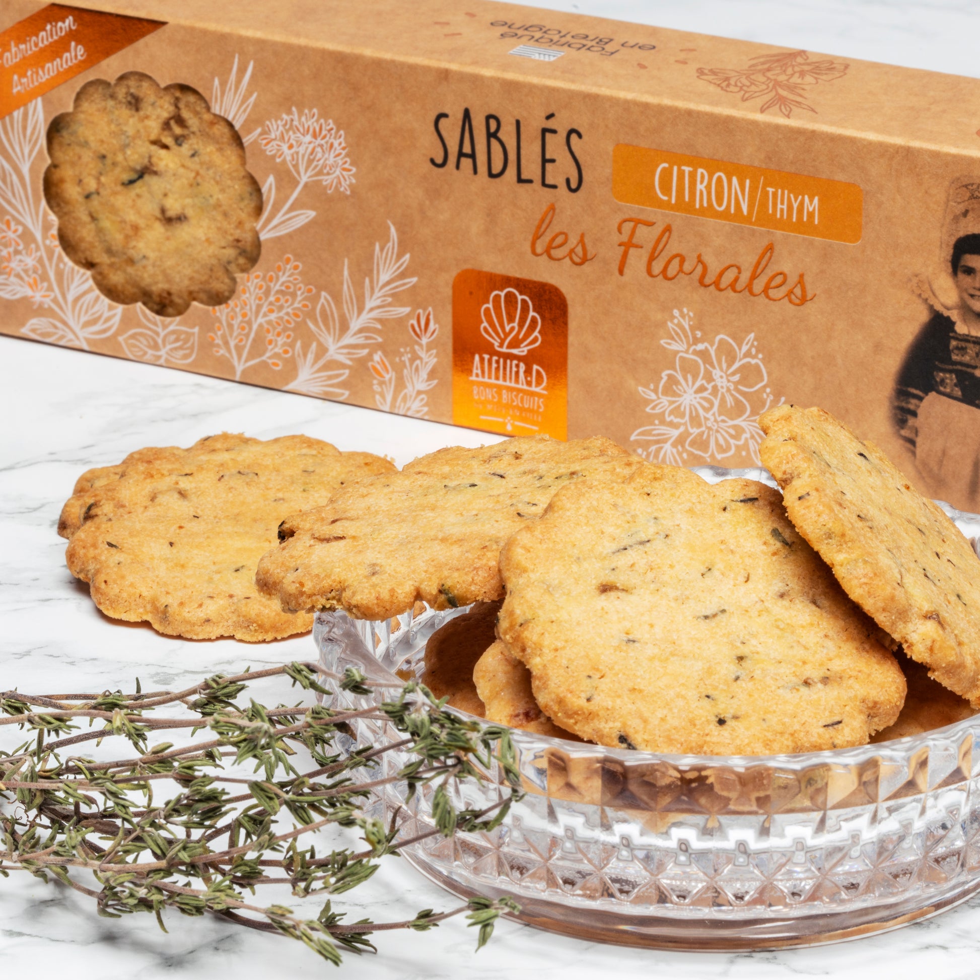 Ces sablés sont une invitation à la découverte de nouvelles saveurs pour des moments gourmets et originaux. Préparés avec des ingrédients régionaux, ces sablés associent joliment le citron et sa touche de thym. Une expérience gustative surprenante qui éveillent les sens et les papilles ! Une ode à la richesse de notre terroir régional !